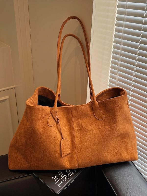 Women's Solid Color Shoulder Bag, Fashionable Temperament Large Capacity Tote Bag